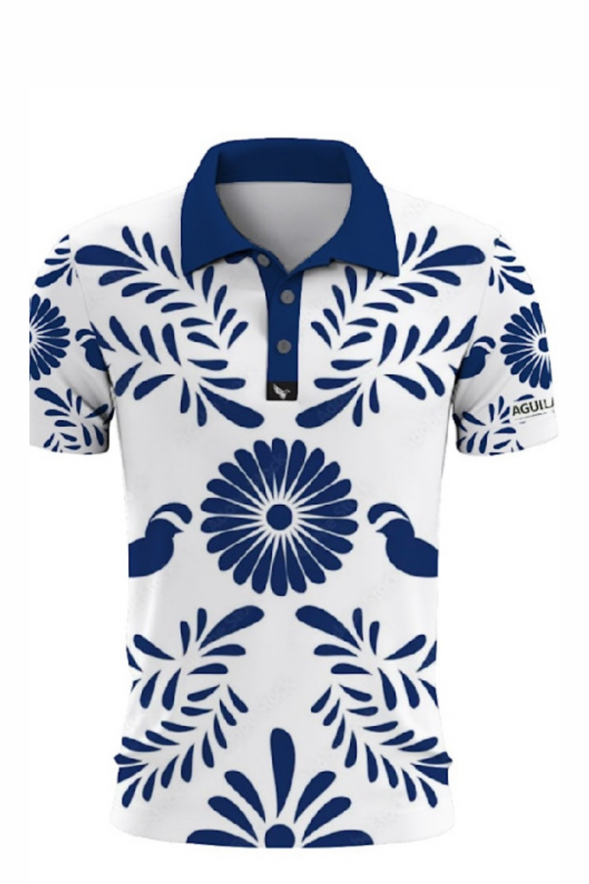 Herencia Real elevates the game with a refined blend of heritage and premium performance. Featuring a deep navy Otomi-inspired motif on a crisp white base, this polo delivers understated elegance with modern athletic comfort.