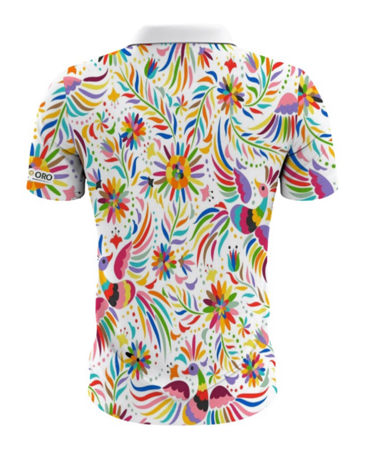 De Colores brings vibrant Mexican artistry to the fairway. Featuring a rich, multicolor Otomi-inspired print on premium performance fabric, this polo delivers cultural expression with elevated, modern style. Lightweightb, breathable, and tailored for a refined fit — it’s made for golfers who play bold and look effortless.